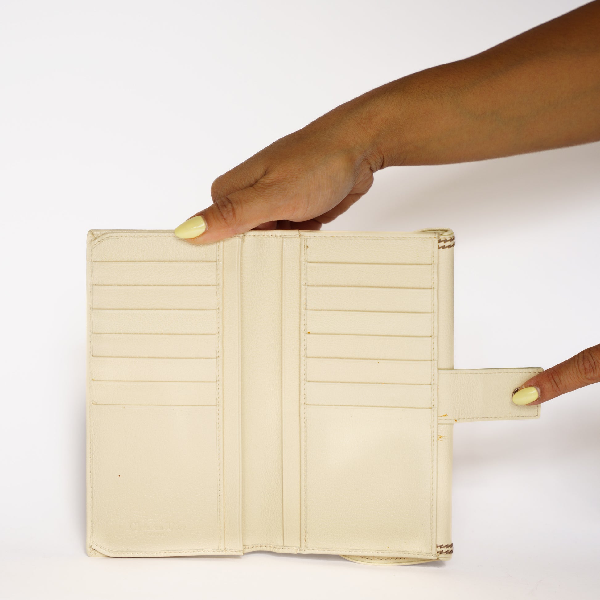 Christian Dior Saddle Wallet in Cream Leather