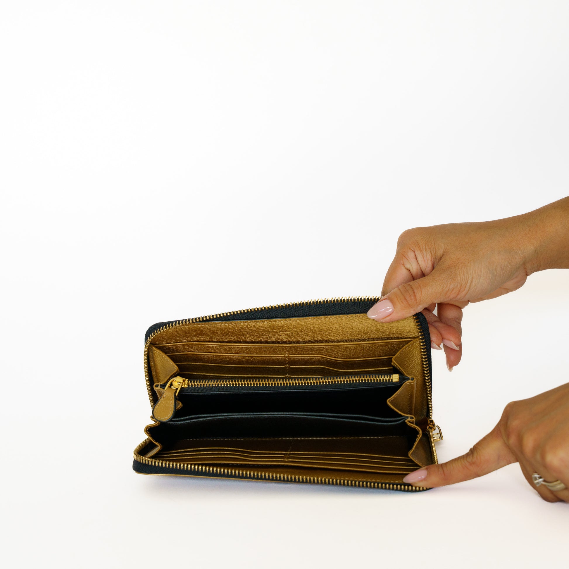 Loewe Zippy Anagram Wallet in Gold Leather 250925B237